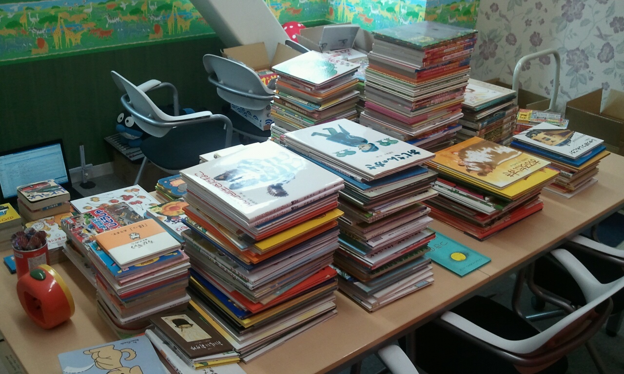 そして漫画だけではありません。絵本もたくさん届いています。会社の「こどもの部屋」で数える作業の様子です。